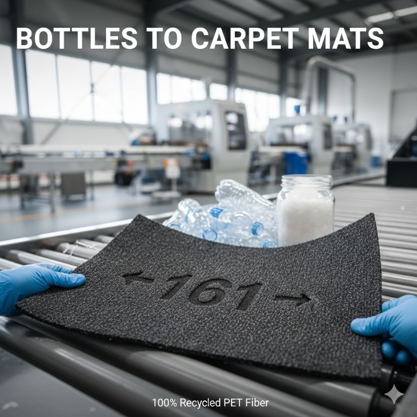 A single floor mat panel utilizes fibre from about 161Ltr. Pet Bottles.